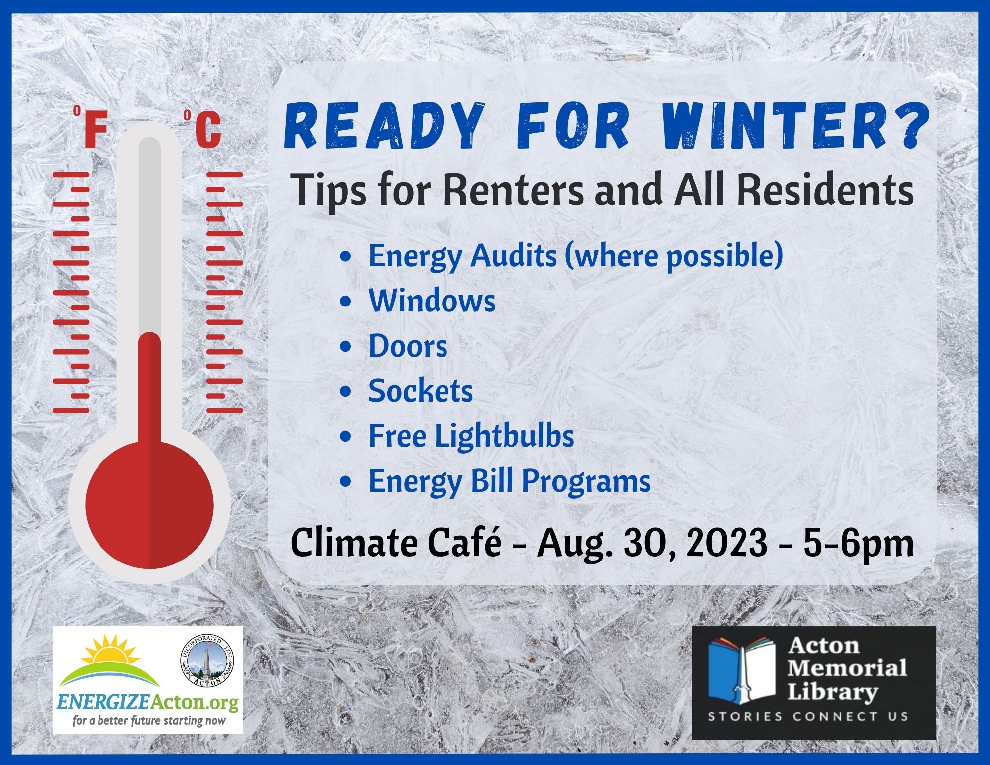 This event is co-sponsored by EnergizeActon.org and the Acton Memorial Library.